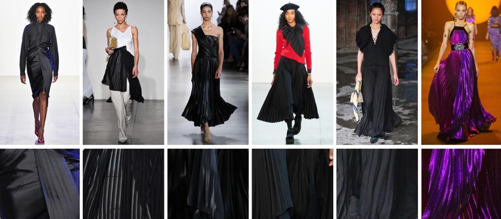 在快節奏數位文化的影響之下,人們希望透過充滿手工藝感的精美褶疊設計達到平衡。這股百褶細節潮流從2019/20就開始流行,將在這一季變得更加多變。百褶細節可運用於上衣和洋裝,或可以不同材質打造多變的百褶風情,或可以點綴於局部讓整體更顯精緻。Aliette將百褶設計局部運用於黑色緞面窄裙腰部,增添款式的精緻細膩細節。Jeffrey Dodd以平滑雪紡打造百褶設計並點綴於上衣剪接位置,再搭配上柔和寬褲,讓整體充滿飄逸動感。Jonathan Simkhai全件褶疊洋裝,以柔軟皮革展現單肩上衣的細緻抓褶和下擺流暢飄逸的線條,帶有個性感的女人味。Claudia Li利用棉布褶疊變化設計製作百褶裙單品,呼應整體簡約風格。Raisa Vanessa運用光澤面料壓褶,以雙色拼接設計打破單一色彩侷限,呈現出奢華精緻的禮服裝扮。