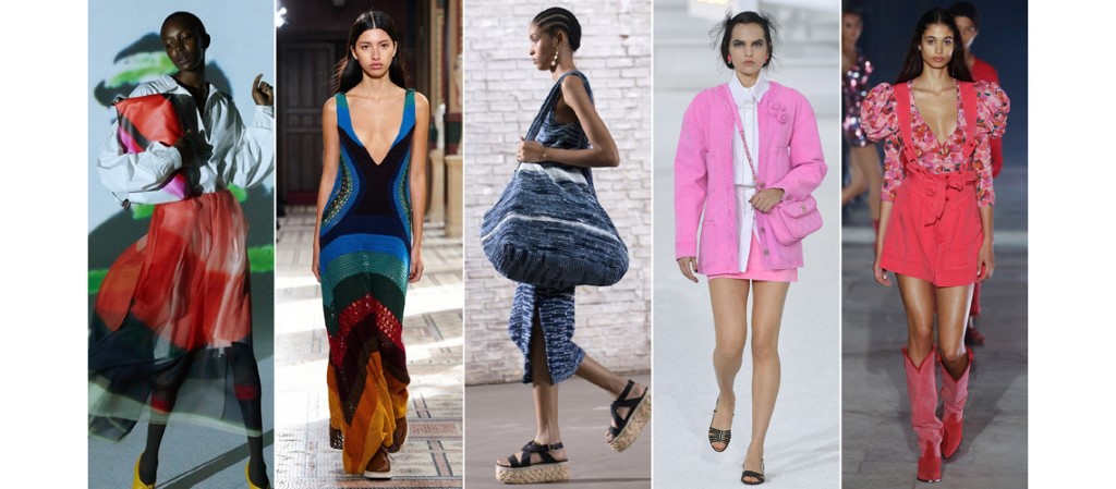 紐約精品店Kirna Zabête認為2021春夏的流行重點有皮革,金色,胸罩式上衣,全身的針織裝扮,橘色與綠色的鮮豔普普色,以及編鉤織。推薦的品牌則有Dior、Chloé、Paco Rabanne、Rokh,尤其Rokh堪稱浪漫與概念恰到好處的結合,而且價格還十分合理。