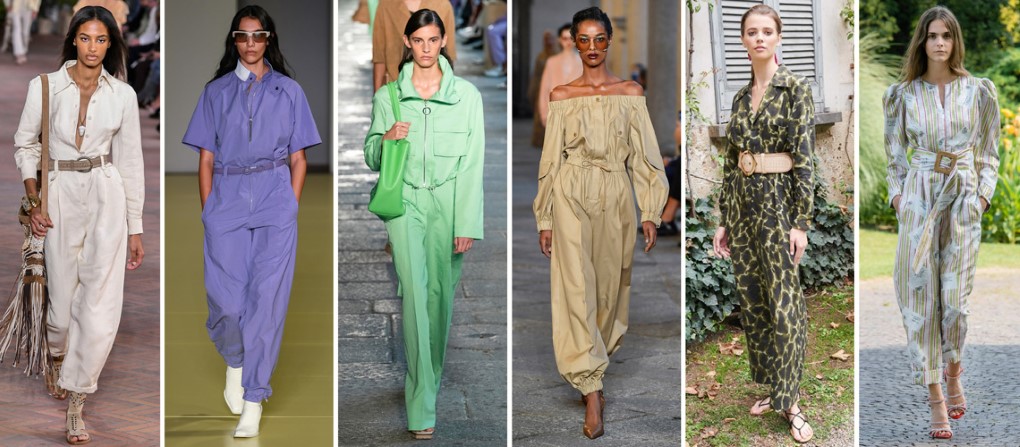 Boss和Max Mara採用拉繩抽皺來調節腰圍,打造不受身形限制的款式,壓光的亮面材質效果改善了笨重工裝的刻板印象,整體轉化的更為輕鬆自在。