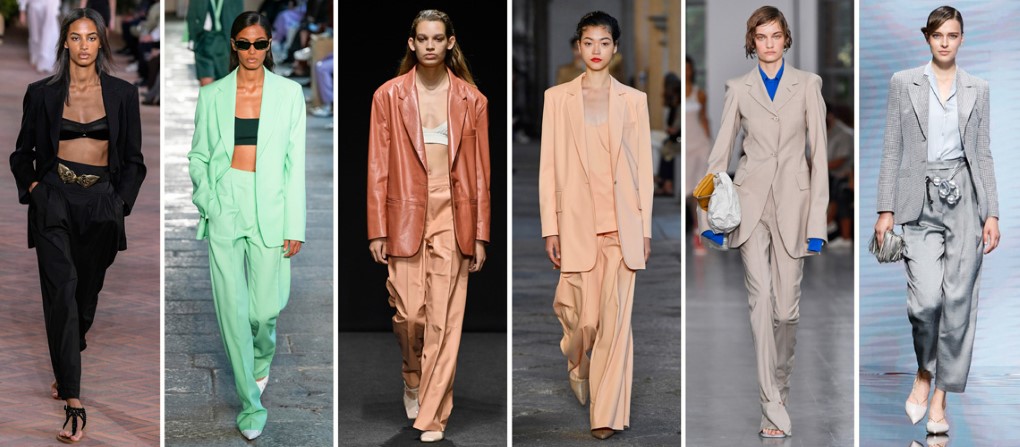 2021春夏米蘭女裝週上出現了大量的西裝外套內搭單穿的胸衣,西裝套裝的穿著方式除漸漸趨向休閒,也多了一層性感、自在的味道。