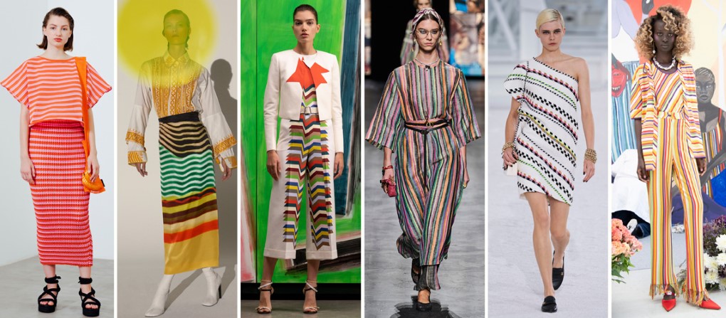Dior以棉麻材質詮釋出手工細膩感,Chanel則利用編織元素,將兩種色彩交錯變成斜線排列條紋,或如Kenneth Ize所示,將不同方向條紋相融合,凸顯線條的多變與精緻性。