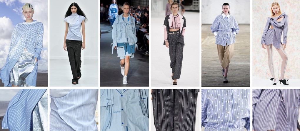 Jarel Zhang則將襯衫條紋布的圖紋套用在機能運動款式上,帶出另一種休閒氛圍。Chanel和DAWEI在條紋圖案中融入微型裝飾圖樣,來更新條紋襯衫面料的運用。
