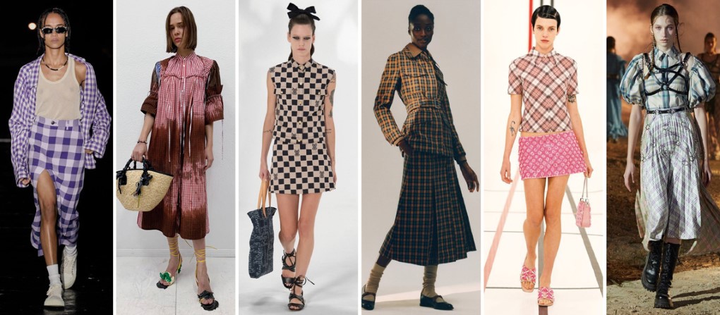 復古潮流回歸,棋盤格印花再次回到伸展台上,尤其以小尺寸的gingham方格纹和tattersall線格纹居多。
