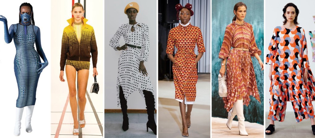 例如Marine Serre將幾何印花套用在貼身的款式上包裹著全身,圖樣依照身體不同部位的曲線產生變化,呈現合身版型上的印花應用。