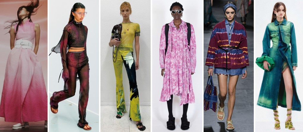 環保意識抬頭,讓許多品牌自願擔負起社會責任,除了選擇使用環保永續性材料,可持續性的染色工藝備受關注,並利用源自手工染繪紮染的技巧創造出許多自然暈染的美學。