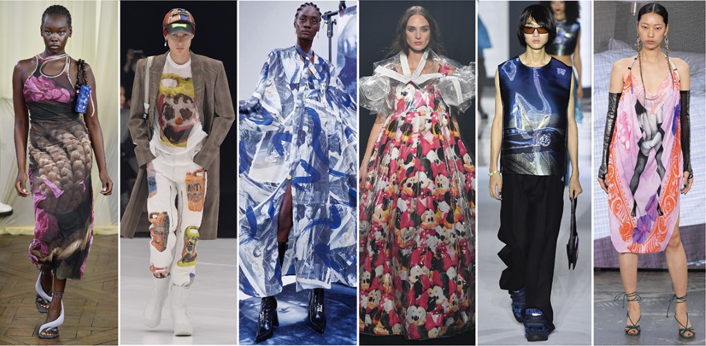 隨著科技數字世界和真實世界的交織越來越深,虛實融合的趨勢也展現在服裝上,2022春夏巴黎時裝週上有許多設計師將數位圖像轉換成服裝印花,呈現的除了科技未來還有復古懷舊的趣味,大面積的滿版放大效果讓圖像最大化,更能凸顯設計師想傳達的訴求。