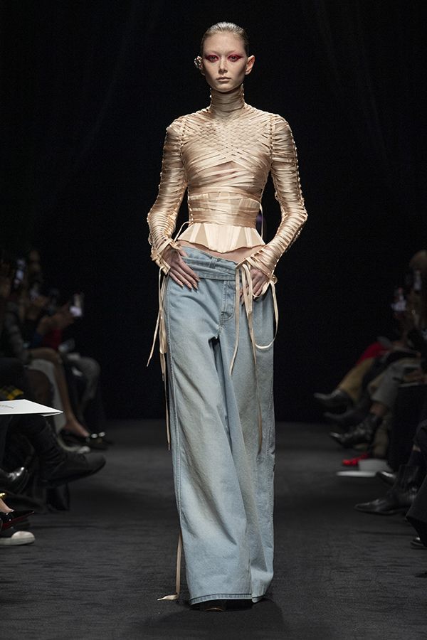 細節部分,除了手工感十足的粗針編織組織,帶有運動風格的繫帶細節也非常流行,充分說明運動風已經從成衣趨勢轉變為高訂的流行元素之一。