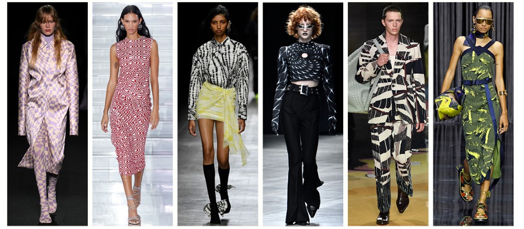 創意圖案常令人剎時無法判斷來自個人視覺錯視或是圖騰幻變手法。近幾年來印花設計也經常加入科技沉浸式感官體驗和擴增虛擬效果,2023春夏米蘭時裝週以多重疊加圖案,形成前衛的超自然格調,繼續探索著波紋、人工和破碎結合的大膽設計。