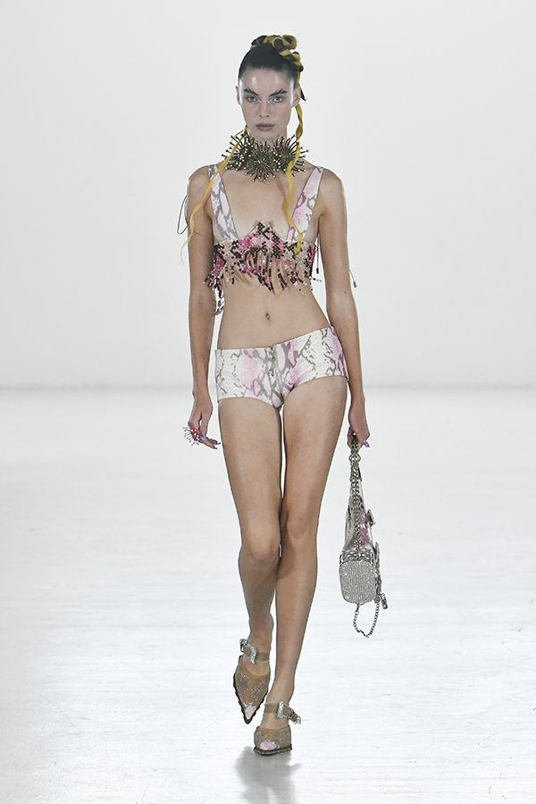 Dilara Findikoglu設計師將低腰牛仔褲與密集的氣眼排列結合,打造帶有Y2K風情的Grunge造型。