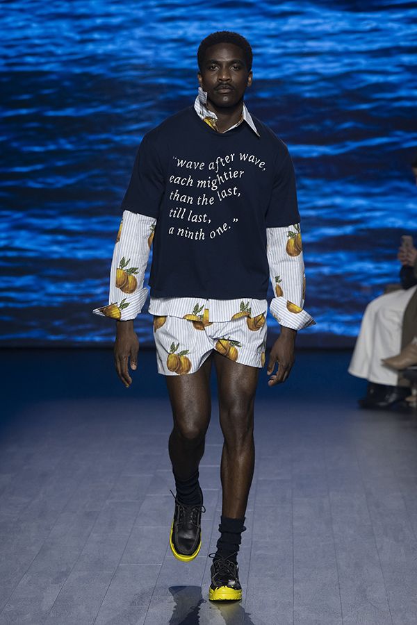 2022 LVMH Prize得主Steven Stokey-Daley的品牌S.S.DALEY,23秋冬以歌手Kate Bush的歌曲《The Ninth Wave》作為靈感來源,講述曾祖父曾於海軍服役的海上故事,另外融合酷兒文化,嶄新詮釋海洋風格。