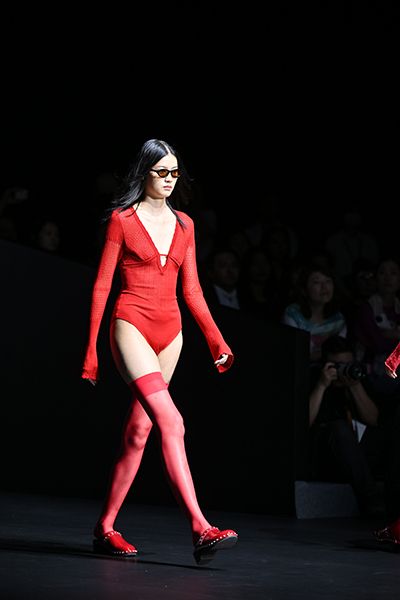 因應香港Centrestage的邀請,FETICO顛覆以往品牌多以黑白色系為主,這次的秀上可以看到許多大膽亮紅色,包含CENTRESTAGE ELITES的秀場也是以紅色燈光與視覺為主,為的是向Emi Funayama的謬思—充滿90年代氛圍的時尚偶像王菲致敬,王菲曾經一套大紅色穿著讓Emi Funayama記憶深刻,也讓本次展演多了一些香港風格。