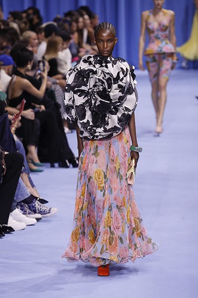 春天意象的浪漫花朵是春夏常見的設計元素,2024春夏巴黎時裝週,花朵跳出2D印花的限制,以更戲劇效果的3D方式呈現。設計師以各種布料製作醒目的立體花朵,精緻細節更能凸顯品牌工藝,花朵與服裝保持同色是維持實穿設計的秘訣,放大的立體花朵比起柔美印花更能表現本季強調的力量感。