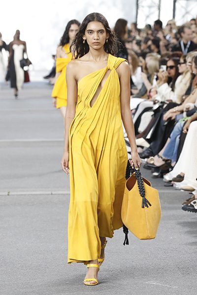 在詮釋歡樂與自由的度假氛圍上,Stella McCartney也挑選了輕盈量體來詮釋,光澤綢緞改造成花苞外觀的球體洋裝,圓潤包覆的版型輕盈舒適,露出較多肌膚的設計在夏季更能增加輕鬆涼爽感。