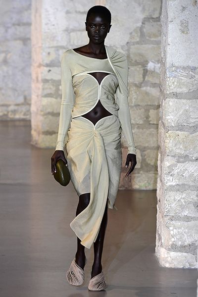 若論貫穿整個巴黎時裝週的輕盈感,則可以參考Acne對於立體花朵的用法,以輕薄透視的雪紡薄紗製作浪漫荷葉,薄透面料即使多層次堆疊也不顯厚重,搭配同樣材質的簡約洋裝,空氣透明感外觀在悶熱春夏尤具吸引力。