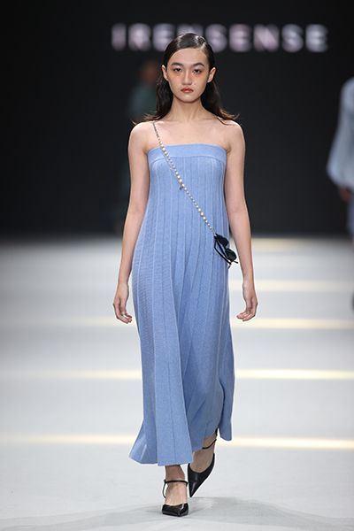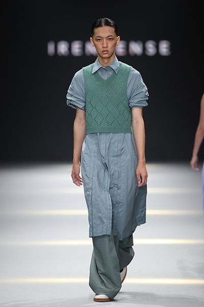 而一衣多穿也是作法之一,像是IRENSENSE修長的針織裙擺,其實可以自由綁繫,長短由人;夾克門襟是由有兩條可拆卸拉鏈的裁片組成,讓外套可以變化Oversize或修身輪廓。還有WEI. TZU-YUAN拆組服裝元件,利用排釦拉鍊的設計細節,讓服裝可以隨心拆卸重組。
