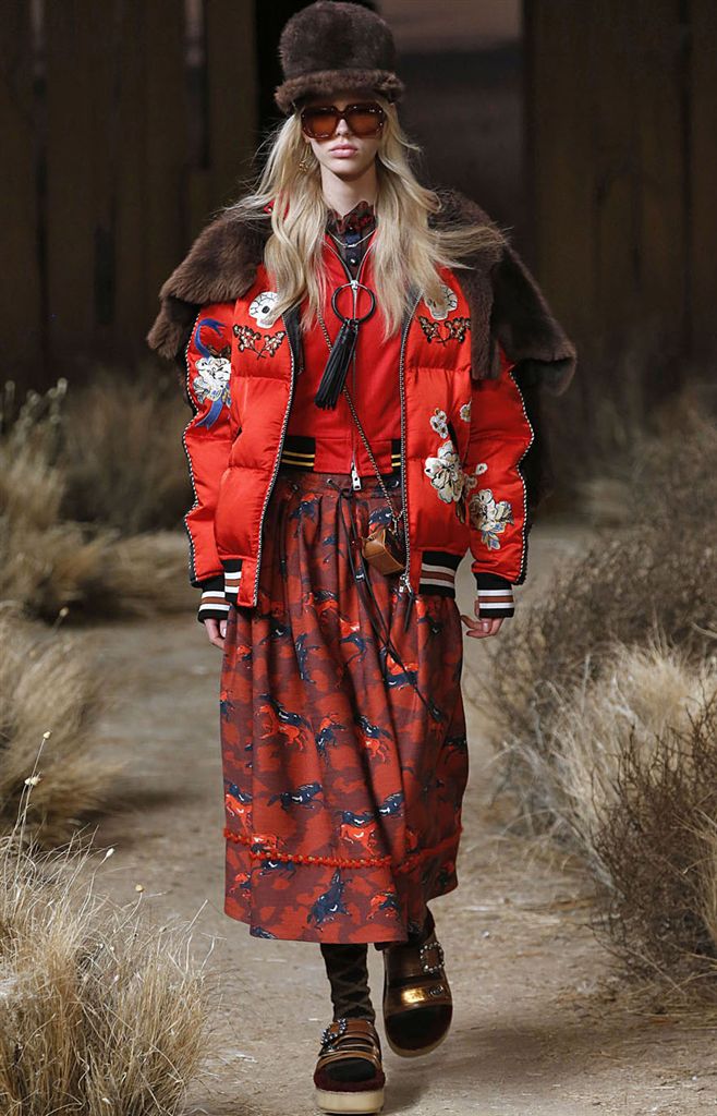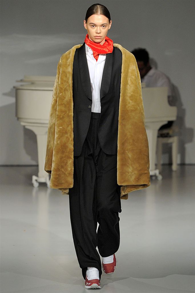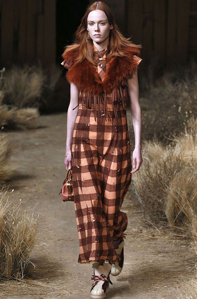 圖樣上將經典格子放大比例,藝術幾何以色塊表現出運動風貌。素材以雙口袋設計、晚宴流蘇以及法蘭絨正裝為指標。色彩部分涵蓋了別緻經典的黑色、溫暖的中性色、多層次的紅色以及金黃色,抒寫未來秋冬的色盤。