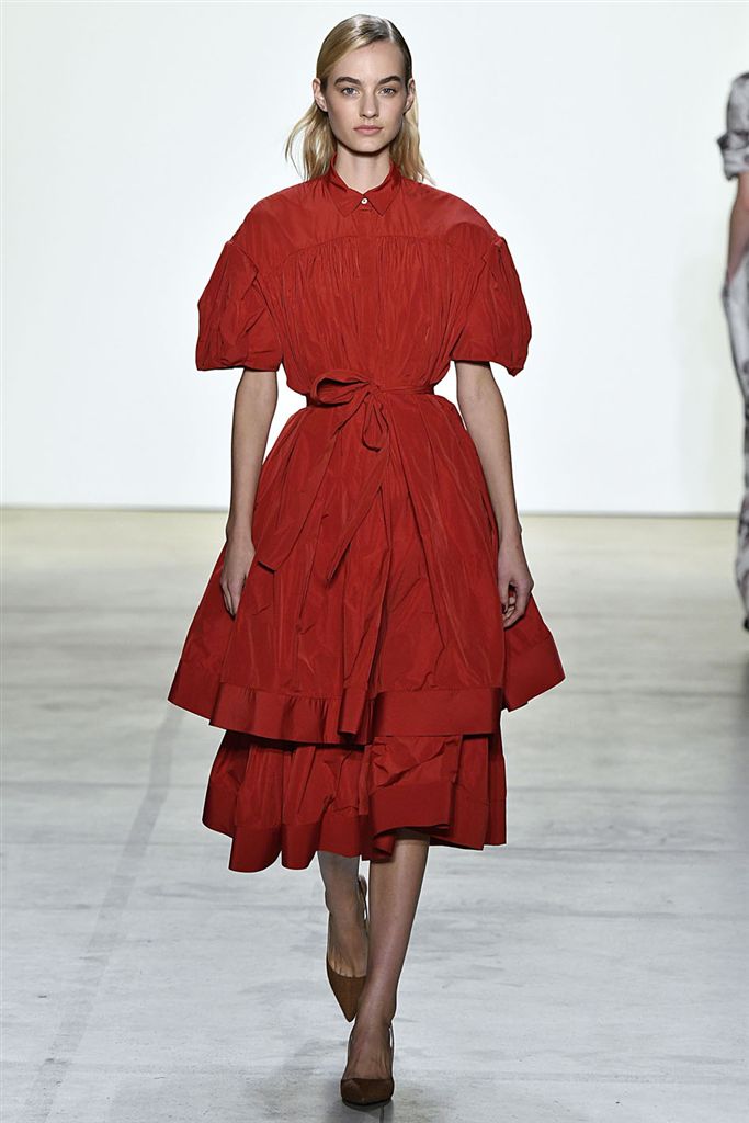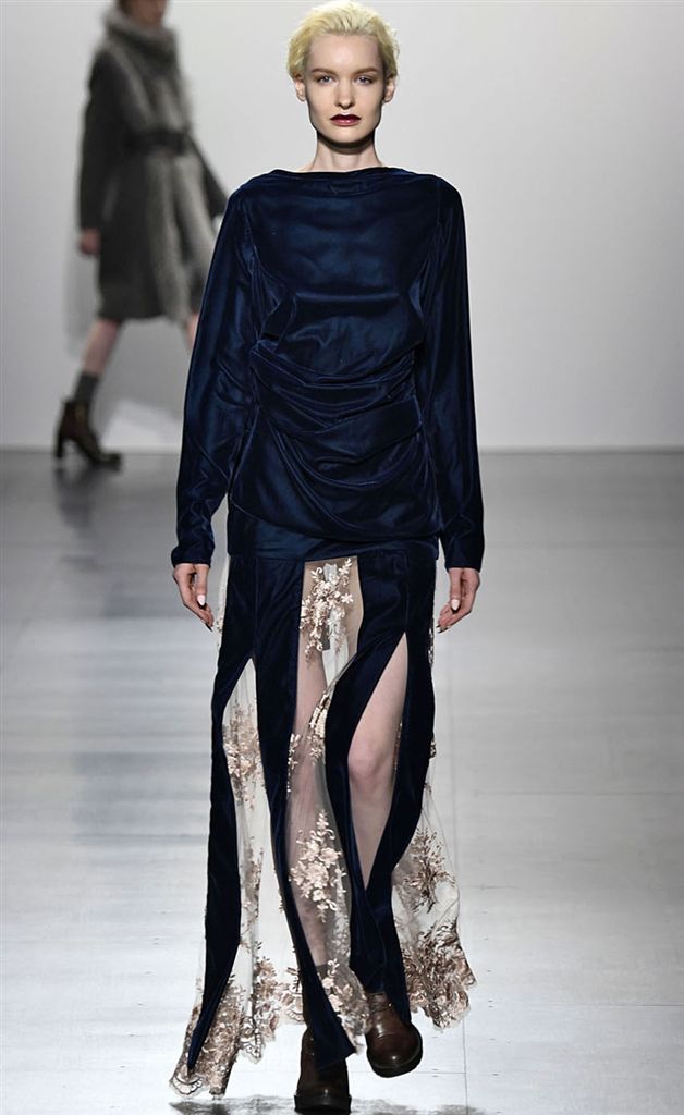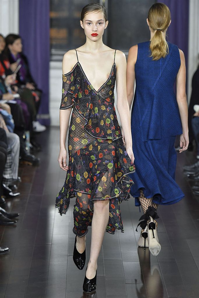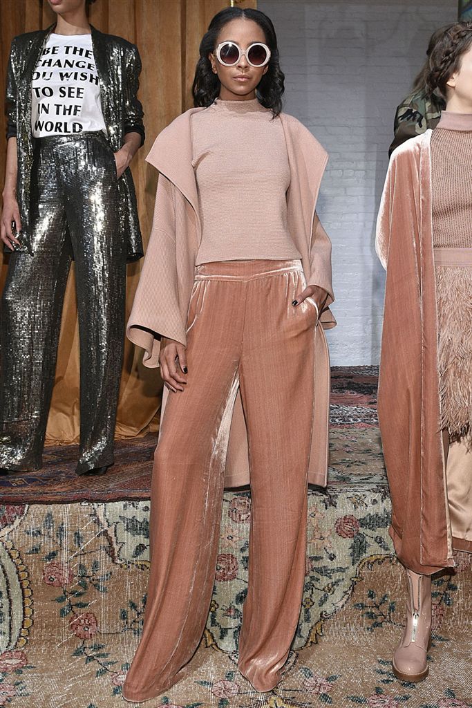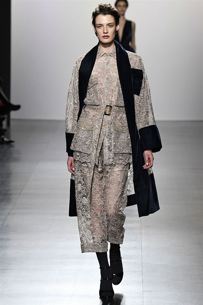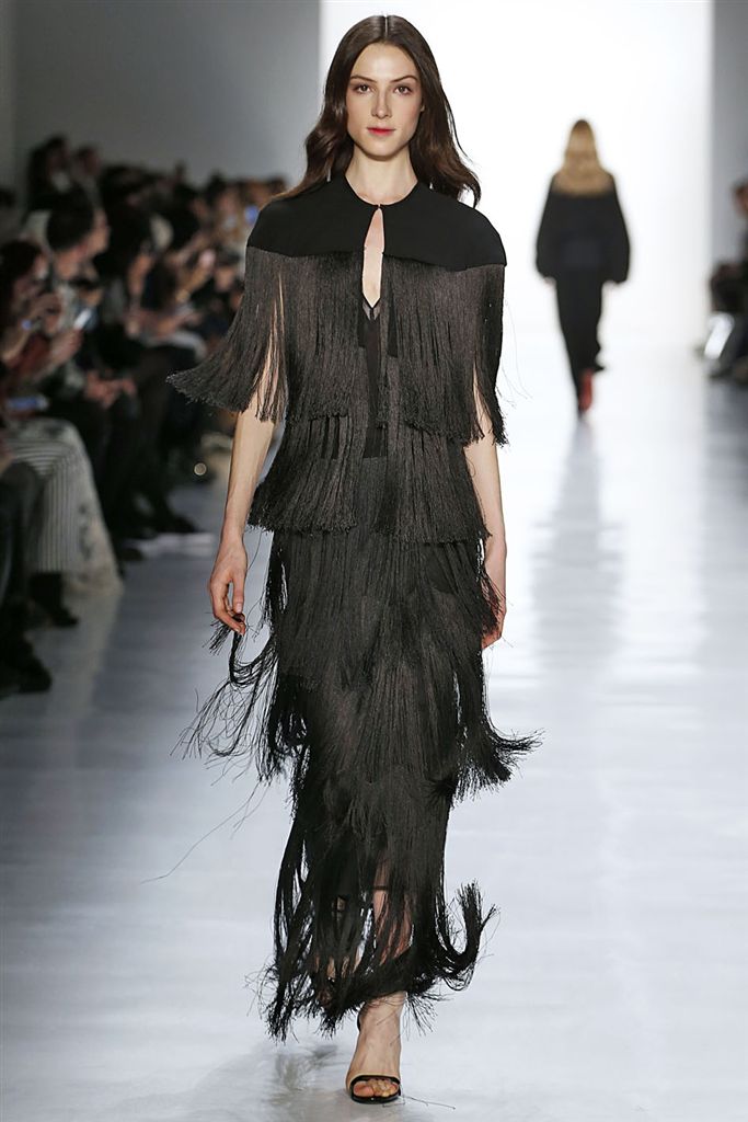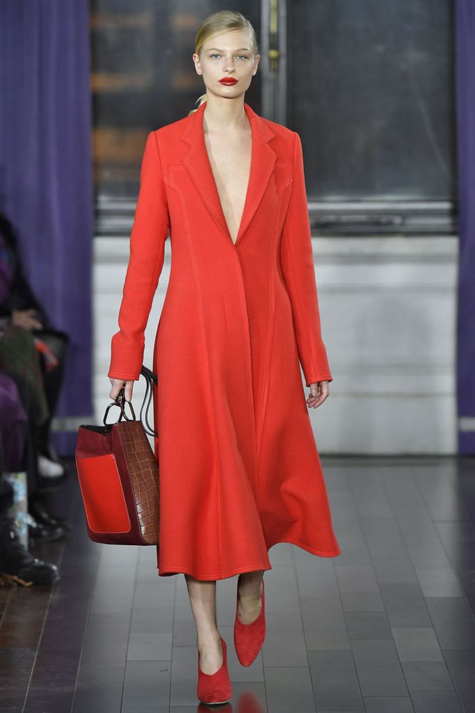 彰顯女性力量的服裝是2017/18秋冬紐約T台的設計核心,呈現在外則是剪裁俐落搭配加大比例。箱型外套的輪廓更寬更長,晚禮服則以兩件式套裝風貌呈現,還有天鵝絨的運動風剪裁運用等,整季剛柔並濟、透著硬朗和強勢,堅韌與力量之間並不失溫柔魅力。