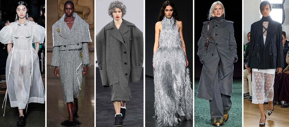 Simone Rocha以人造皮草裝飾、透明裙子和斗篷組合出2024/25秋冬新造型,並以沙漏輪廓呈現超女性化趨勢。
