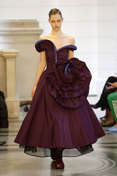 此外設計師並利用羽毛和毛皮增加了質感和量感。酒紅色也繼續成為本季的主調。