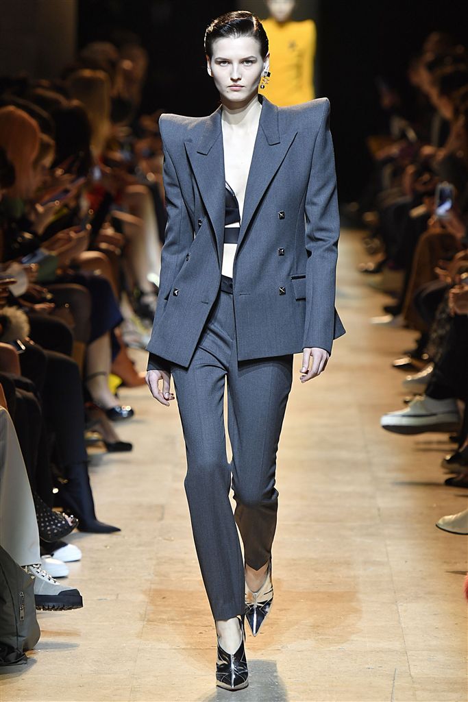 女強人穿著在2017/18秋冬也是一項極為重要的指標風格,設計師從傳統男裝工藝中擷取靈感,無論是Maison Margiela、Loewe、Nina Ricci單排釦西裝,或是Celine和Nehera的雙排釦西裝,皆為長版風格式剪裁,搭配寬鬆柔軟的西裝褲,讓’17秋冬嚴謹中帶有一絲休閒氣味。