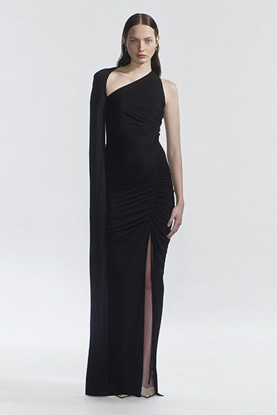 整理而言,以保持單一的材質、單色的布料與簡約的版型為主,但可以如Stella McCartney搶眼亮紅圍巾式的肩部垂墜設計,或是如Hervé Léger以金屬五金環打造綁結式的女神晚裝,MM6 Maison Margiela以立體褶皺、Khaite以流蘇細節更新極簡主義美學,創造出簡約而複雜的高級設計。