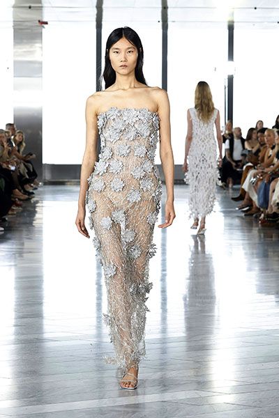 為了迎合春夏的季節氛圍,透明面料被廣泛應用,與流蘇、刺繡、3D蕾絲和立體裝飾等元素的碰撞,呈現出豐富多樣且不拘一格的設計美學。