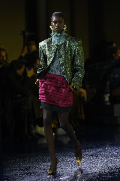 Saint Laurent創意總監Anthony Vaccarello在本季女裝系列上延續品牌自創立以來的核心,為服裝注入獨立自我的態度和價值,同時反映Yves Saint Laurent本人的時尚語言,融合藝術的精緻與本能的欲望,打造充滿女力的80年代聖羅蘭女郎形象。