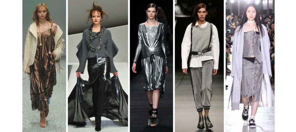 2017/18秋冬東京時裝週,表面帶有金屬光澤感的面料是重要趨勢之一。5-knot、HIROKO KOSHINO、和TAE ASHIDA