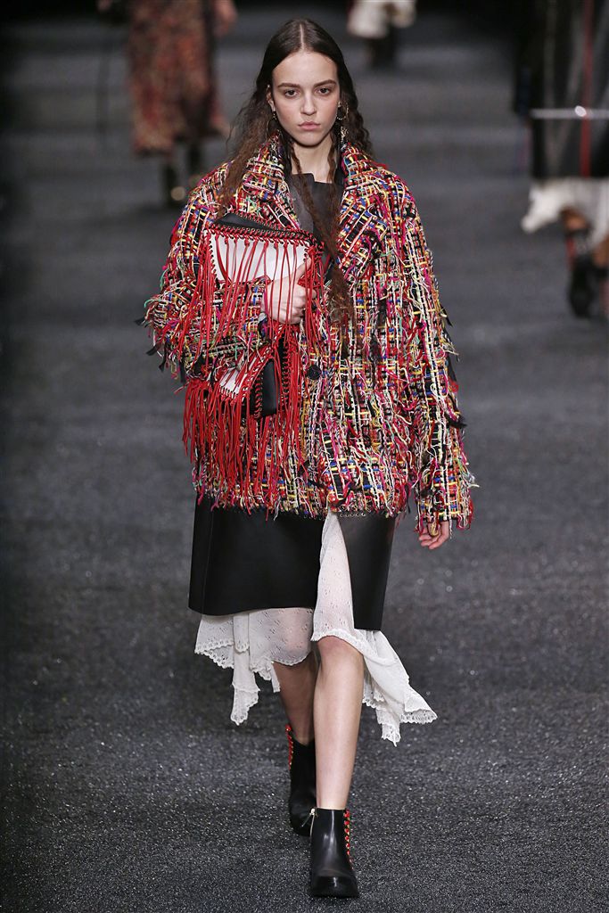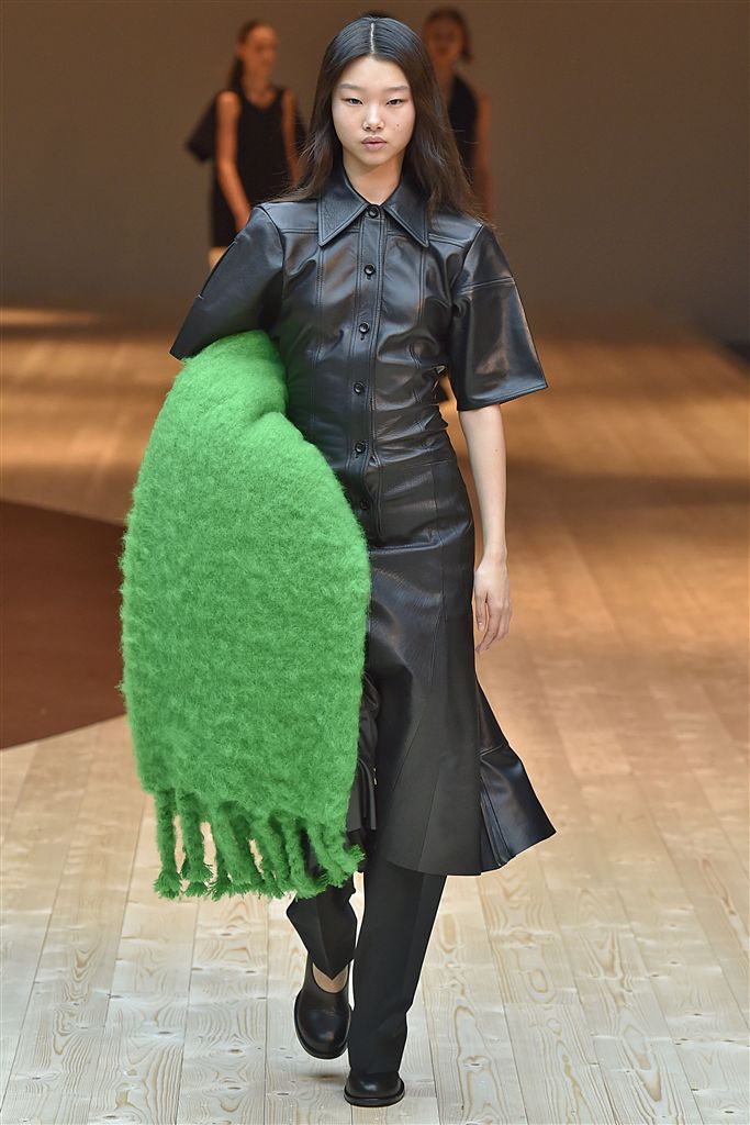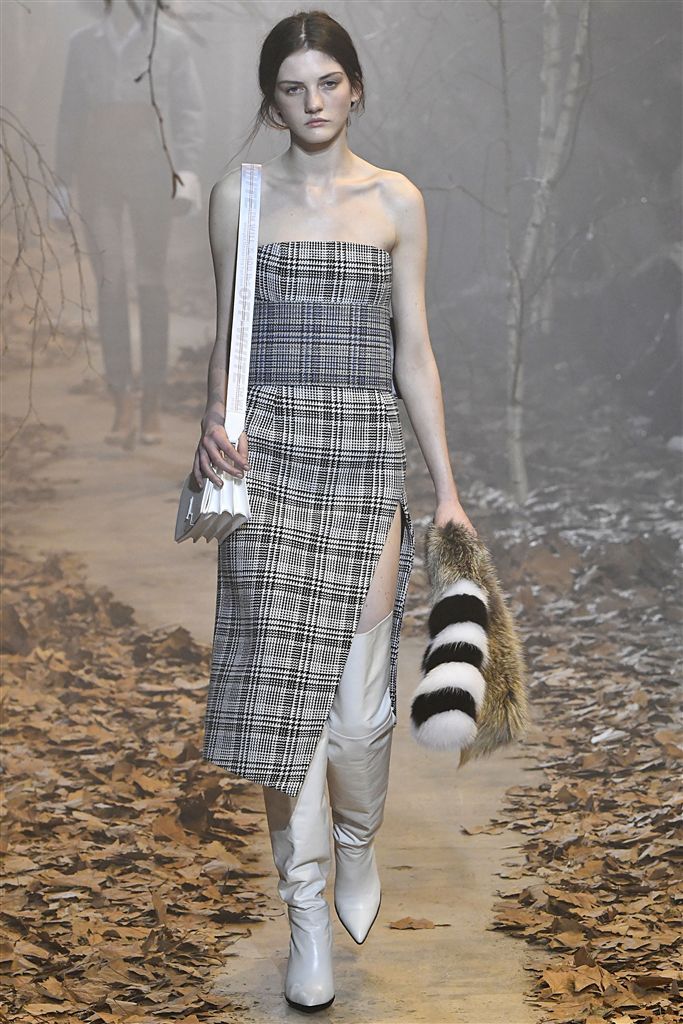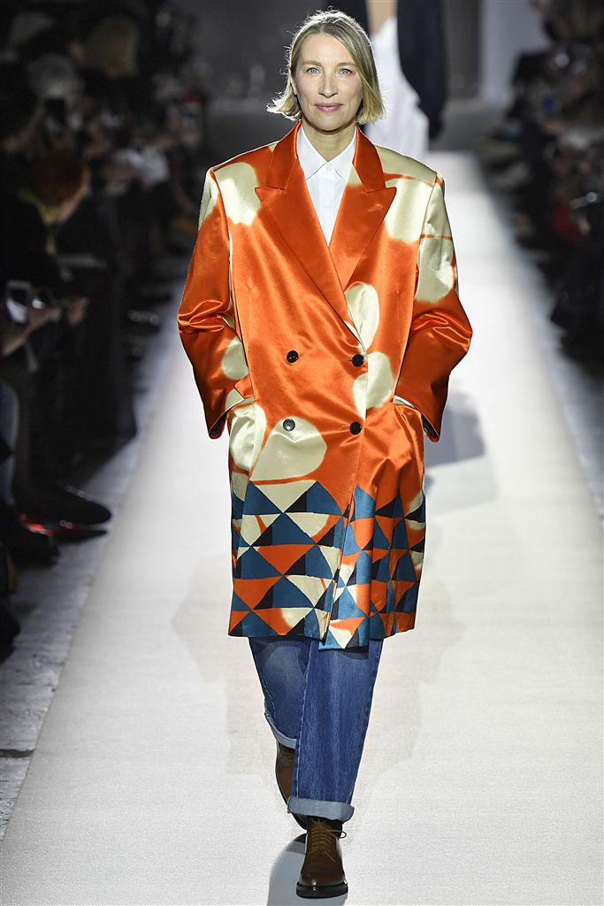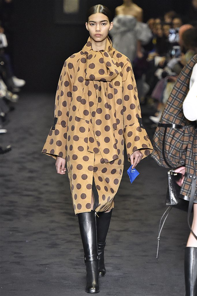 總體而言,外衣絕對值得投資,較長的男式外套是指標商品,長褲套裝氣勢如虹,强調肩部、大一號的雙排扣外套應該很受青睞。另外有許多剪絨羊毛、羽絨外套(如Sacai)、異材質接合大衣(如Off-White)。洋裝也是重要品項,有毛衣洋裝、雪紡洋裝、皮革洋裝、針織洋裝。