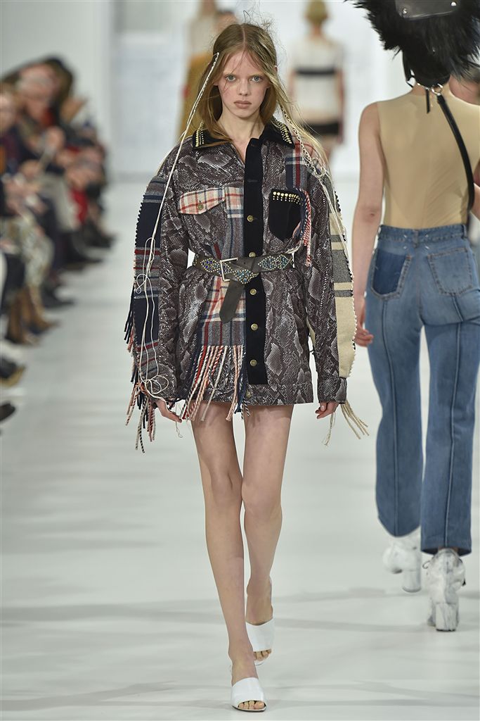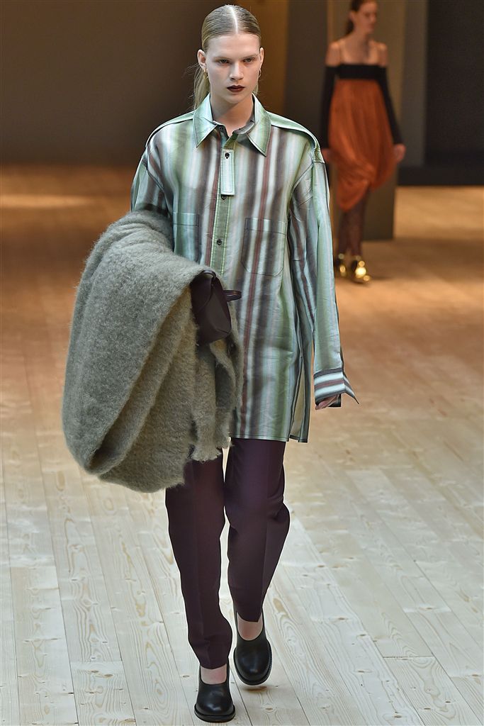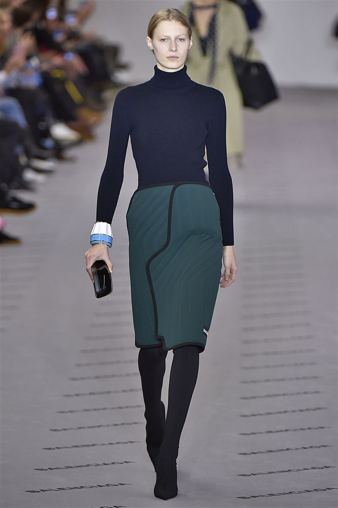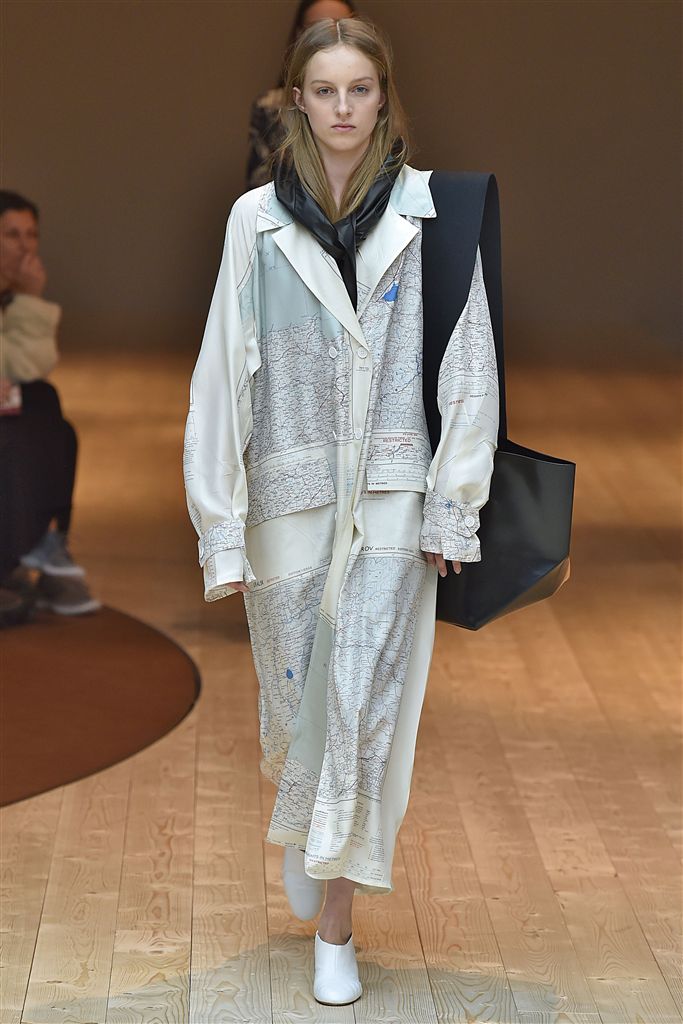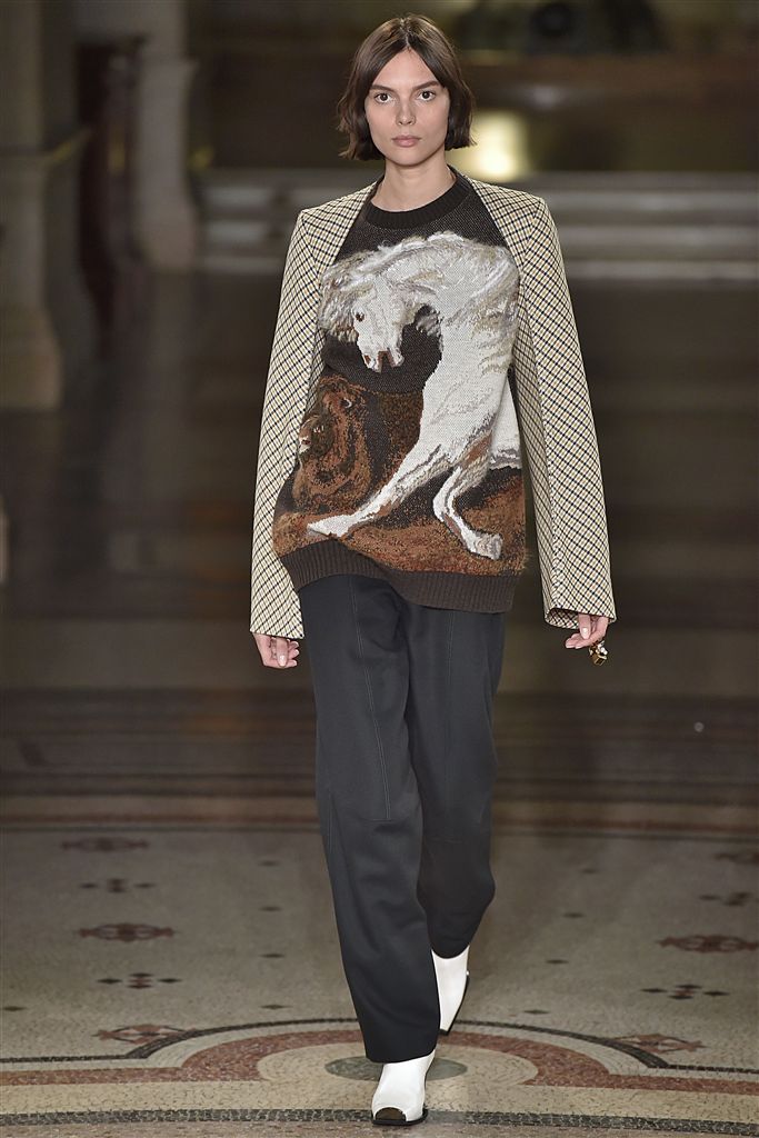 總體而言,外衣絕對值得投資,較長的男式外套是指標商品,長褲套裝氣勢如虹,强調肩部、大一號的雙排扣外套應該很受青睞。另外有許多剪絨羊毛、羽絨外套(如Sacai)、異材質接合大衣(如Off-White)。洋裝也是重要品項,有毛衣洋裝、雪紡洋裝、皮革洋裝、針織洋裝。