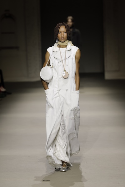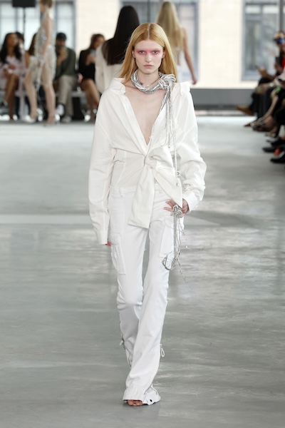 白色的清冷感應用於簡約主題時更顯俐落,像是 Toteme 的長版風衣與洋裝,或 Area 的白色襯衫搭配工裝褲。