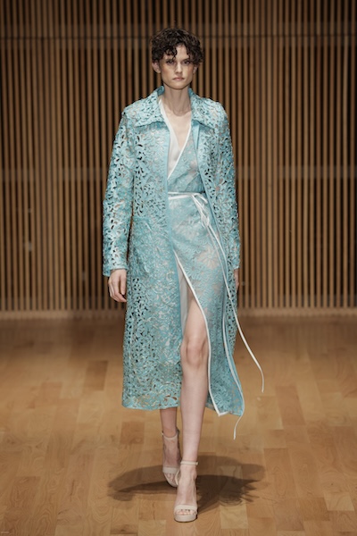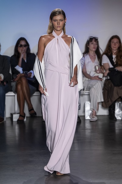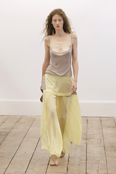 Maria McManus 的漸層粉色裙,Kate Barton 的連身褲,以及 Michael Kors 的鵝黃西裝套裝,以柔和色彩展現出質感,是夏季中清爽的配色選擇。