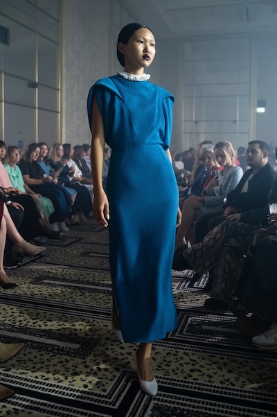 倫敦的極簡風以柔軟質地取代僵硬線條,綢緞與薄紗的自然垂墜,搭配不對稱剪裁與簡約輪廓,讓服裝在行走間呈現流動之美。低光澤布料突顯細膩質感,而合身長洋裝成為其關鍵單品;簡約的垂墜領、繞頸或連肩袖設計,則使整體造型更顯俐落柔和。