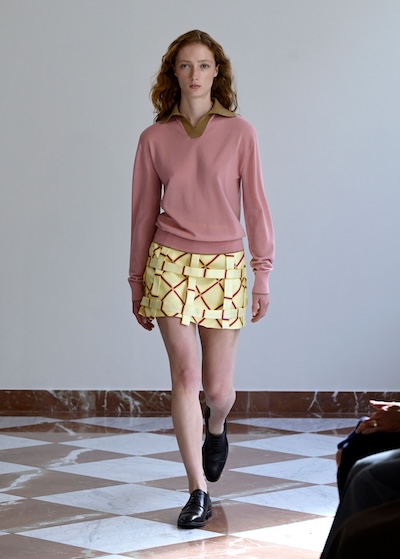 Polo 領在倫敦以雙層拼接與撞色設計展現新鮮趣味。Emilia Wickstead 與 Simone Rocha 運用對比色凸顯領口層次;Paul Costelloe 與 Susan Fang 的無袖 Polo 上衣,搭配裙裝則營造出清爽俐落的夏日造型。