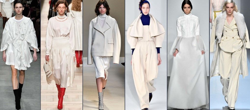 以全身同色同調出現如Burberry、John Paul Ataker、Krizia與Ermanno Scervino,中規中矩的搭配冷白色或布料質感些微差異的相近調搭配表現手法,或者大膽地如Fendi或Delpozo同透過鞋子、配件或是內搭的服飾搭配耀眼的原紅色或寶藍色。