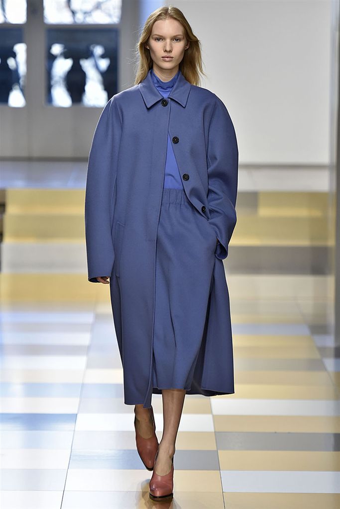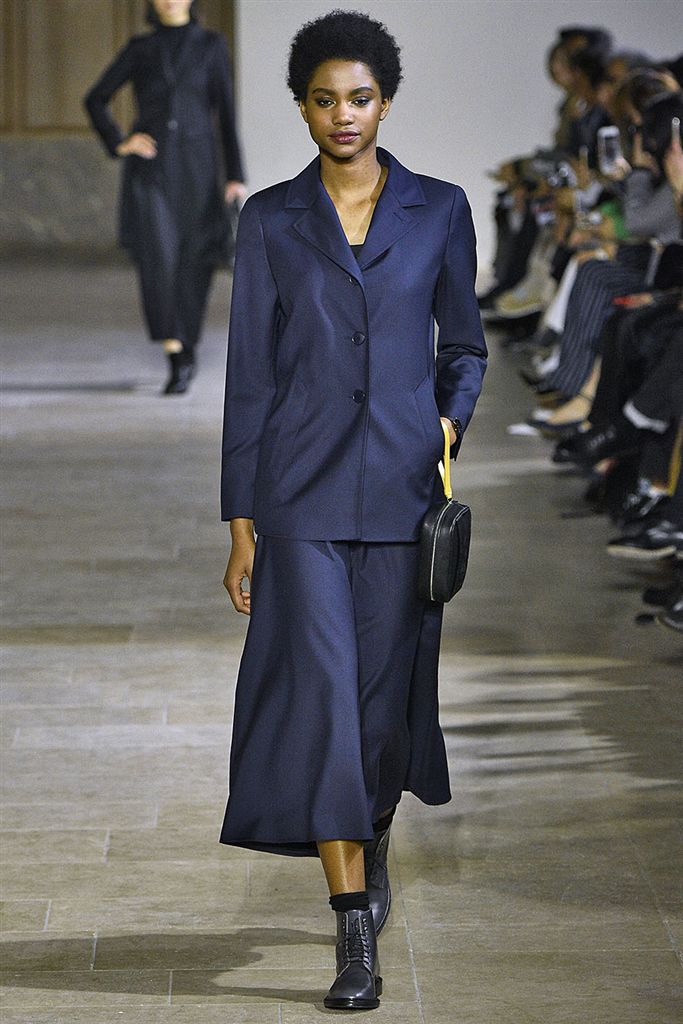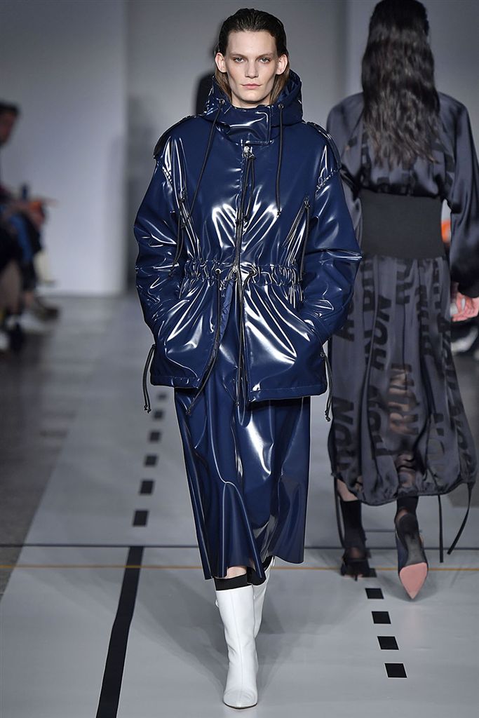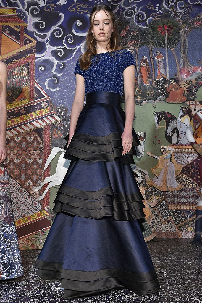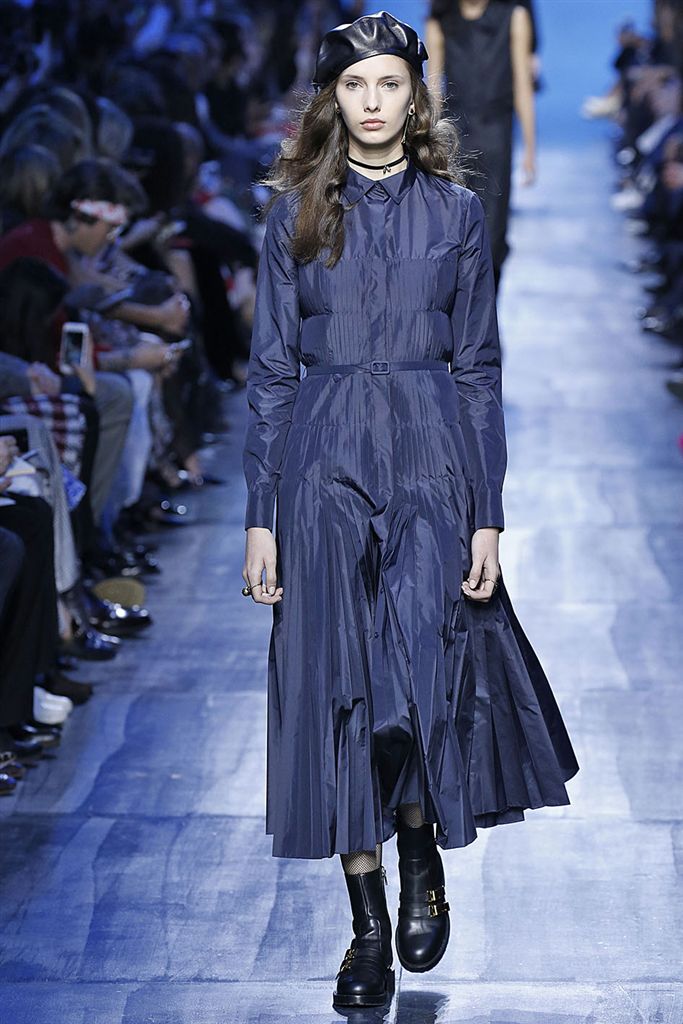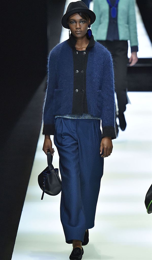 相較起寶藍色,海軍藍彩度十足但更容易搭配,可使寶藍較難觸及到的典雅禮服款型如Alice Olivia也能運用。Sportmax雖然款型與布料都非常運動機能氛圍,但搭配上海軍藍使單品更往時裝的市場接近,Christian Dior的連身摺裙款式也有相同的用法,較科技人纖感的布料更具人文感的海軍藍,能使兩種相左的氣息達到和諧的平衡。在色彩搭配上亦多看到與小塊面黑色的組合,如Giorgio Armani、Alice Olivia。