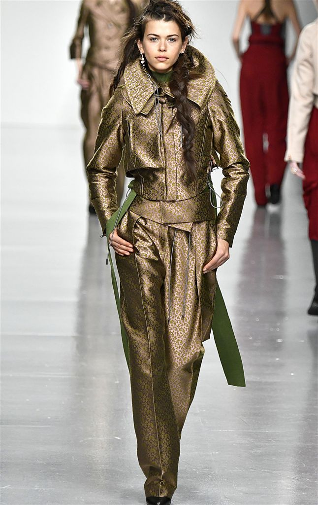 Erdem、Dolce&Gabbana與Gucci都選用了帶有數位感現代風格的配色,讓奢華貴氣的緞面提花帶出新鮮時代感 ;Antonio Berardi與 John Paul Ataker 同樣選擇較為保守的金銅色系,但卻分別用了極小與超大比例的不同圖樣表現;Etro與Alexander McQueen都帶民俗感,一個濃烈個性,一則優雅飄逸。
