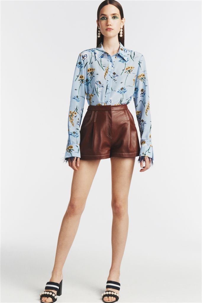 皮革在歐美早春季節過渡時節還是能穿上身,只是多以截短的外觀輪廓出現。例如Elie Saab的波浪短裙,Markus Lupfer的俐落褲裝,以及Versace的皮革短洋裝,都是非常有個性的單品。 柔軟的皮革也能做出褶皺的裙型效果,如同Joseph的黑色皮裙。