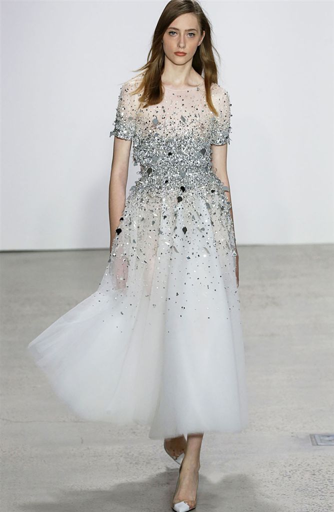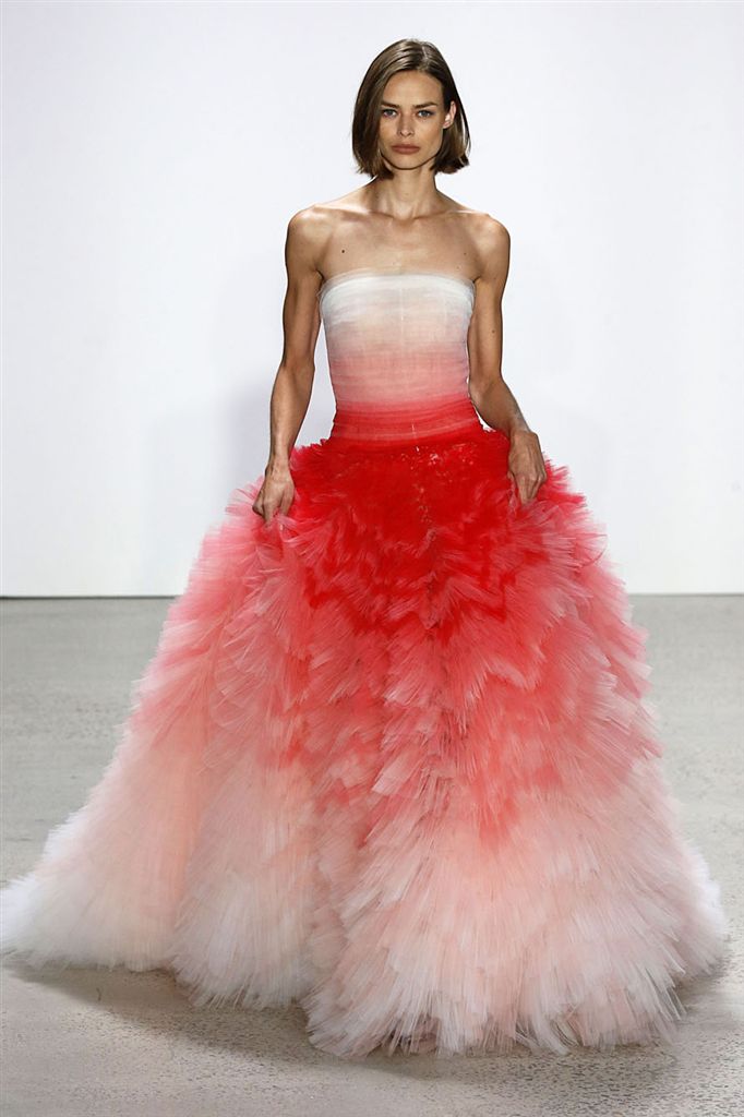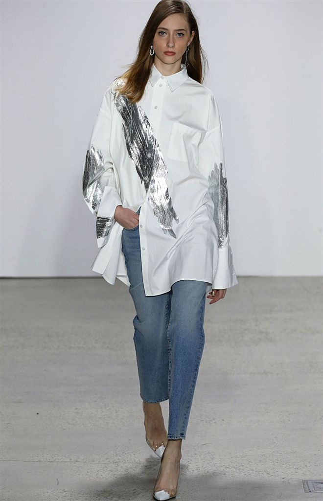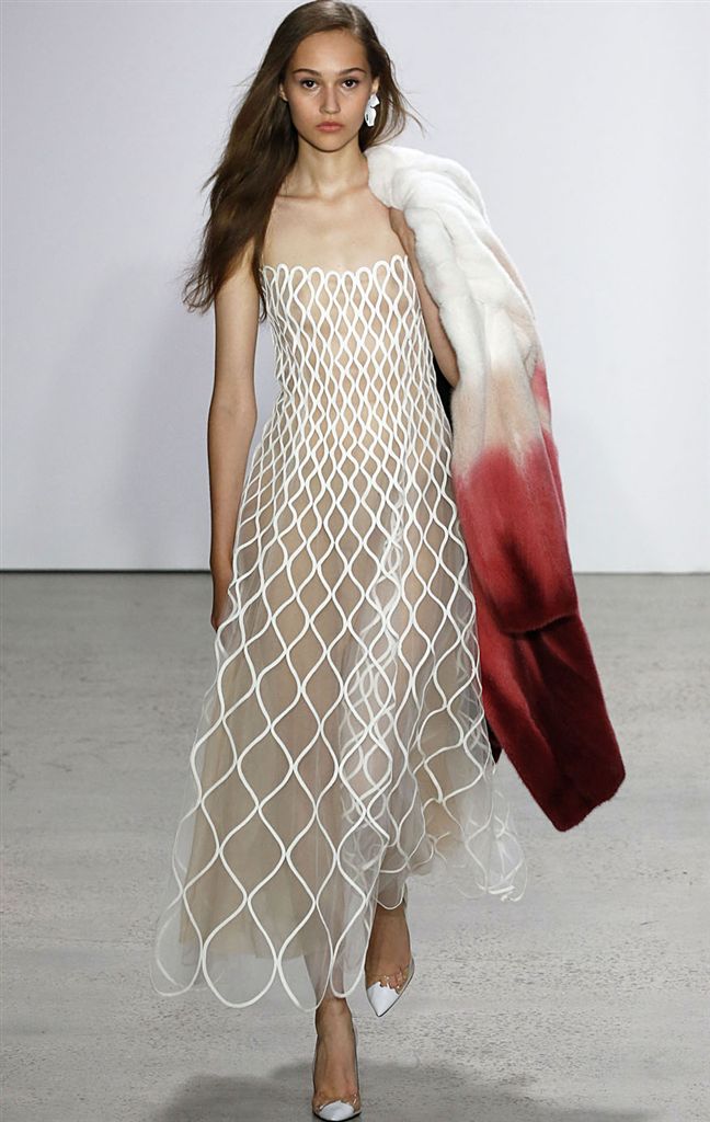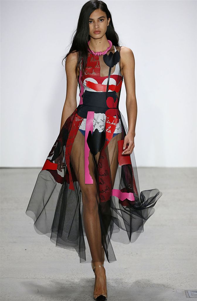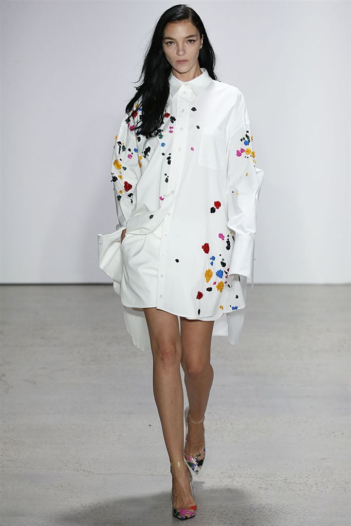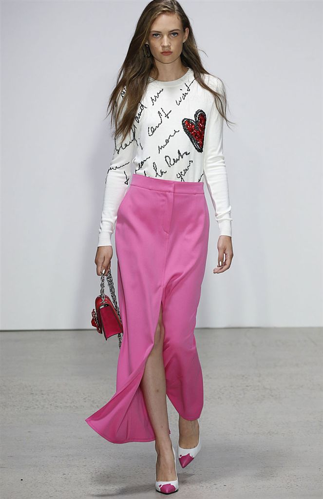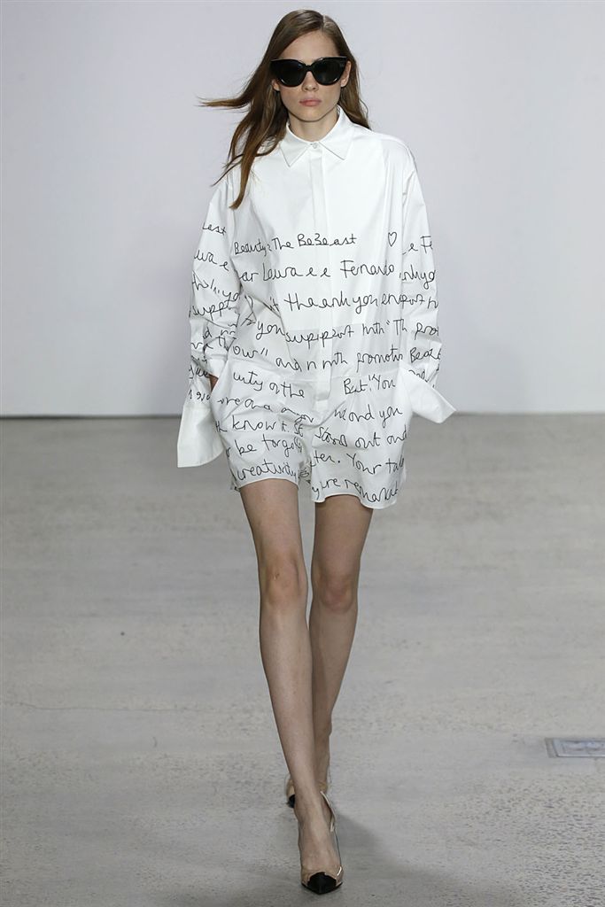 2018春夏系列除了仍有品牌擅長的禮服廓形(包括薄紗透視洋裝、扭轉腰身的網紗禮服),設計師並藉由Pop Art和一封來自De la Renta的書信進一步衍伸,將手寫文字大面積地印在衣服上,並搭配飽和色塊、彩色亮片、繽紛的噴漆墨點印花等設計,走向更年輕化的風格。