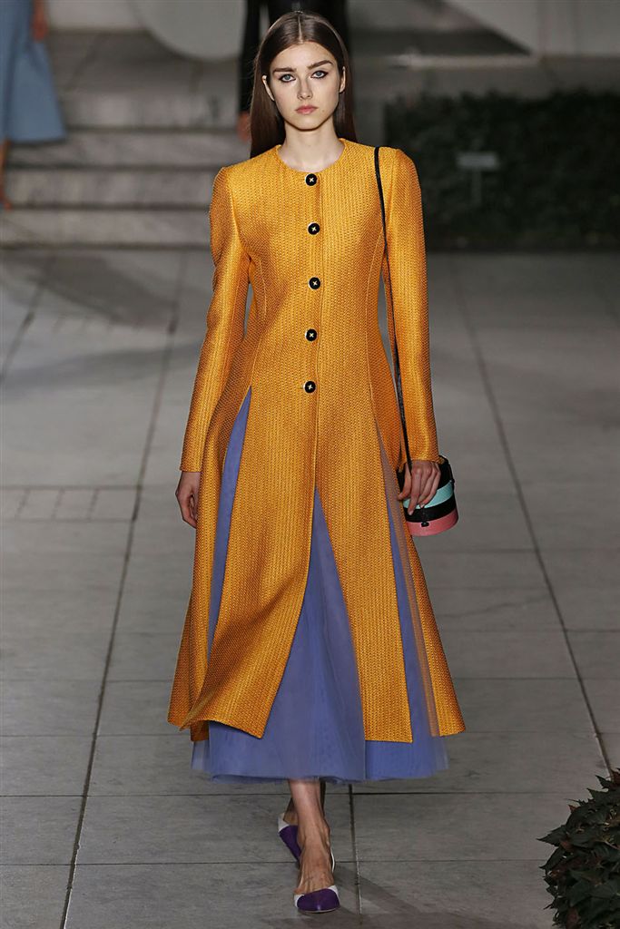 911這個對於紐約市相當沉重的日子,Carolina Herrera用繽紛的色彩為它注入一股樂觀的氣氛... 911這個對於紐約市相當沉重的日子,Carolina Herrera用繽紛的色彩為它注入一股樂觀的氣氛。 由紫色細格紋揭開Carolina Herrera的2018春夏系列,以多彩、鮮艷的小色塊,寬條紋、大圓點圖案帶出活潑的風格,A-Line的牛仔短袖洋裝搭配手繪彩虹鈕釦、飄逸的單肩長雪紡紗、不對襯的斜領細節和誇張蓬袖造型,帶出和諧快樂的氣氛。