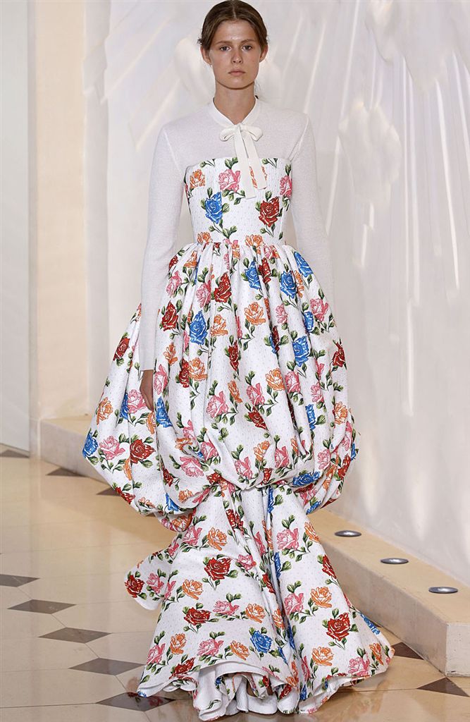 局部加大的氣球花苞輪廓成為2018春夏倫敦女裝新亮點,設計師熟悉的氣球廓形配上誇張的比例打造出戲劇化的效果,例如Mary Katrantzou、Erdem的花苞裙極具份量,而Emilia Wickstead以花苞裙內搭配長裙更顯層次份量;此外並可以在袖口以抽繩或絲帶塑出蓬鬆量體,以誇張的泡泡袖營造比例效果,增添女性魅力,例如Roksanda。