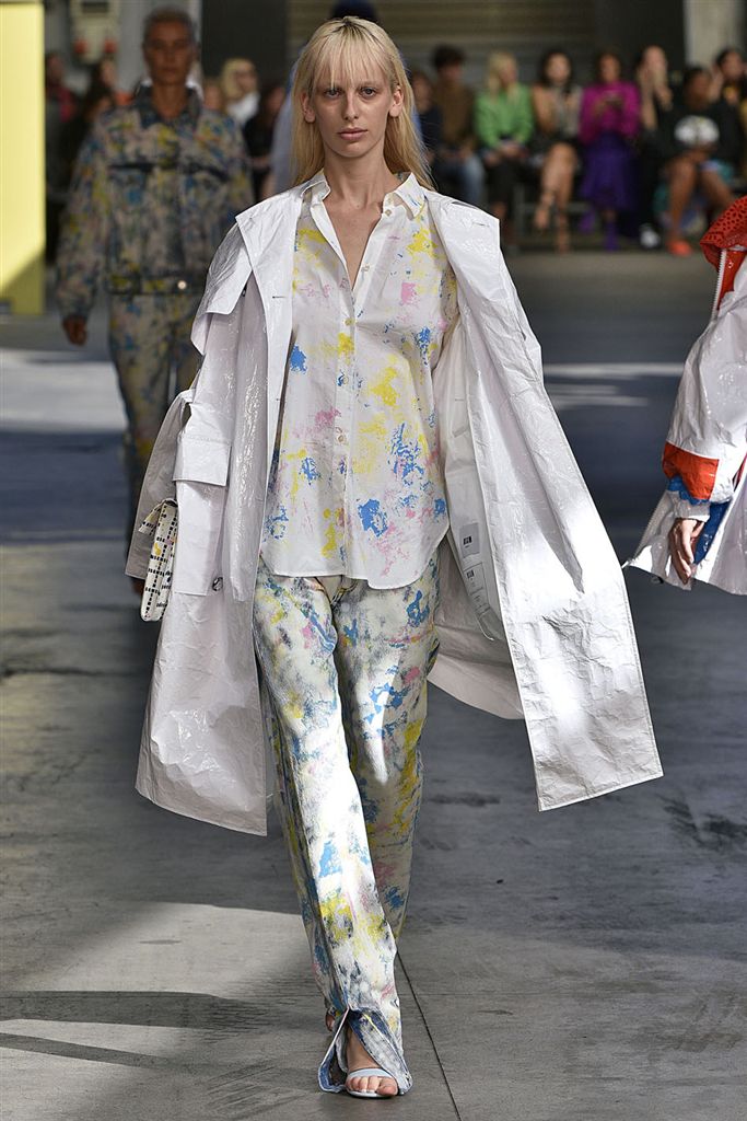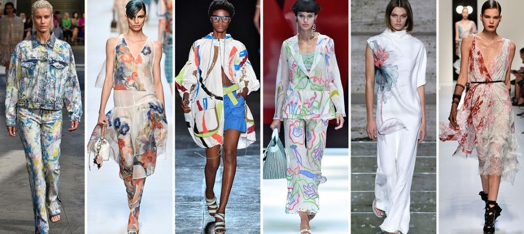 藝術圖樣在2018春夏也有強烈的風格化表現,例如MSGM於休閒的牛仔套裝上,如畫布般的隨興塗鴉,色塊交疊中透出前衛個性;Giorgio Armani表現出的粉彩線條則是帶有童真率性;而Byblos也同樣以彩筆在服裝上恣意地畫出線條。至於Salvatore Ferragamo的花卉塗彩則有東方的水墨之情。