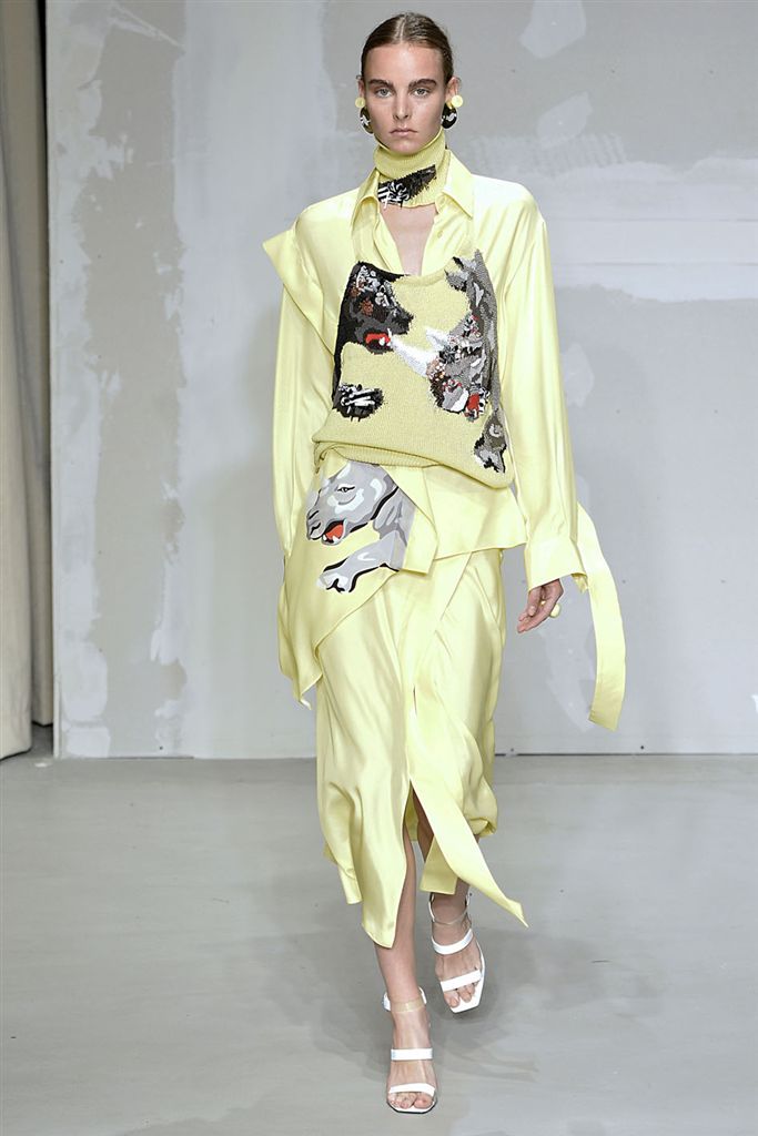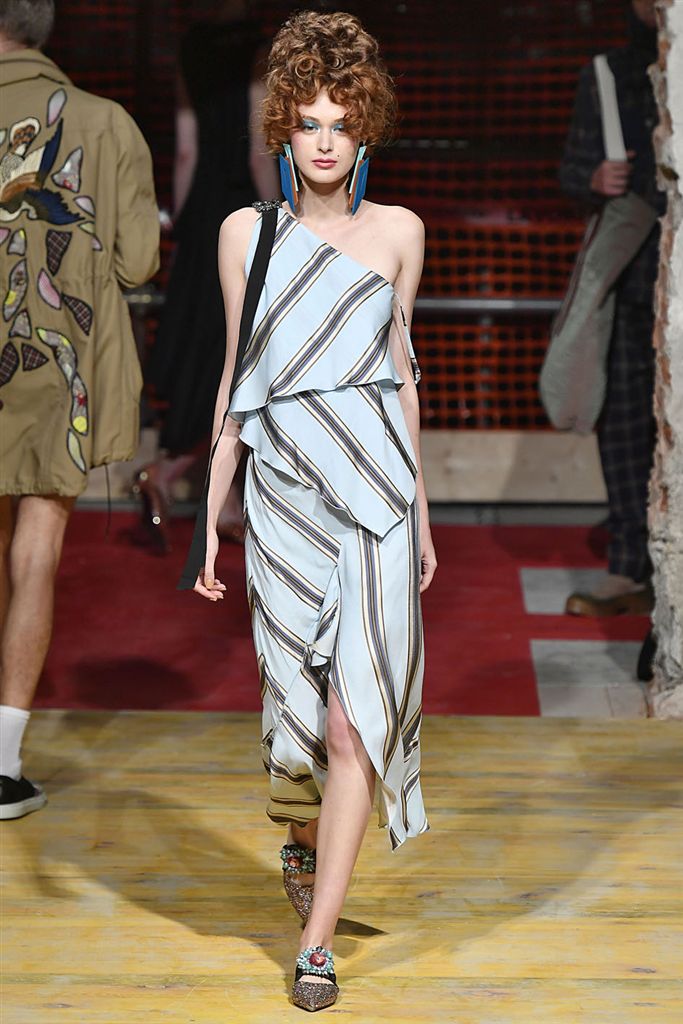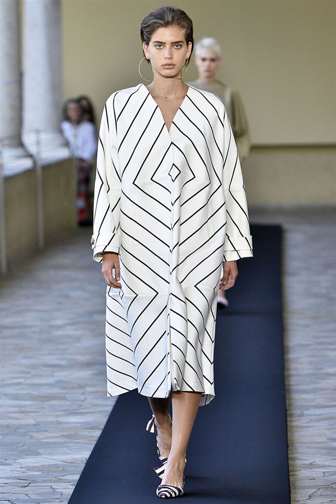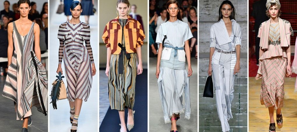 2018春夏的條紋變化是活潑有趣,具有不同方向性與尺寸的多元組合,例如Sportmax在連身裙上變化粗細條紋,充滿青春活力;Fendi則是利用輕薄的條紋布料做方向性的剪接變化,視覺效果豐富;Au Jour Le Jour則有如將條紋襯衫反綁垂掛作為裙裝,層搭反穿的牛仔裙,個性又年輕。