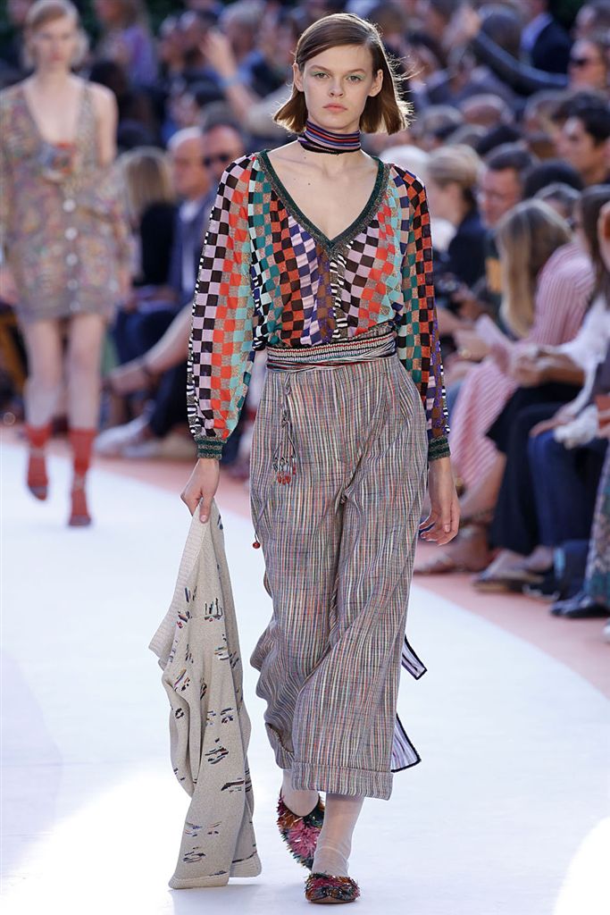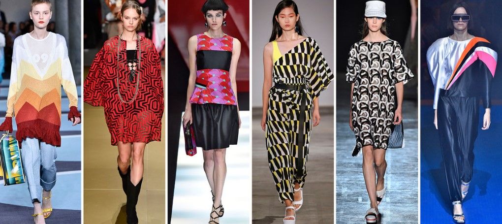 幾何圖像的變化也是2018春夏的一大表現,其中Marco De Vincenzo將大幾何色塊表現在針織衫,營造出高級休閒的調性;Giorgio Armani運用切割的幾何版片,增添單品的變化;Gucci則將幾何大膽切割拼組,透過加寬上衣的詮釋,打造未來科技感的格調;另外Les Copains與Anteprima重複排列的圖像,視覺上也十分強眼吸睛。