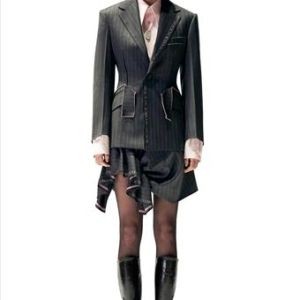 (一)在材質方面,不少品牌都在本季都運用「長毛羽」、「透膚材質」、「緞布」、「丹寧」等作為系列的主角或細節,並應用在長外套、上衣、裙褲等單品;設計上也可利用超大輪廓表現戲劇張力,亦或是透過貼身、半透明且具伸展性的特性等展現面料的舒適感。