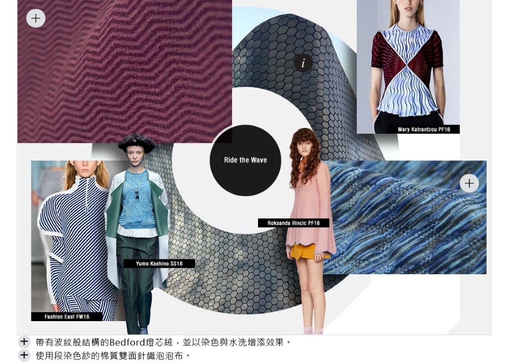藉由織紋、色彩、圖紋、結構,表現流暢的動態感。