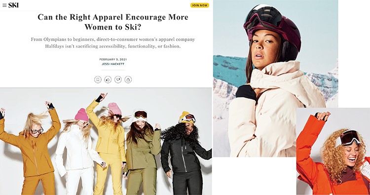 另外,美國戶外女裝品牌Halfdays則特別為女性設計了專屬的滑雪服,讓女性能加入一向以男士為主要市場的滑雪活動。
