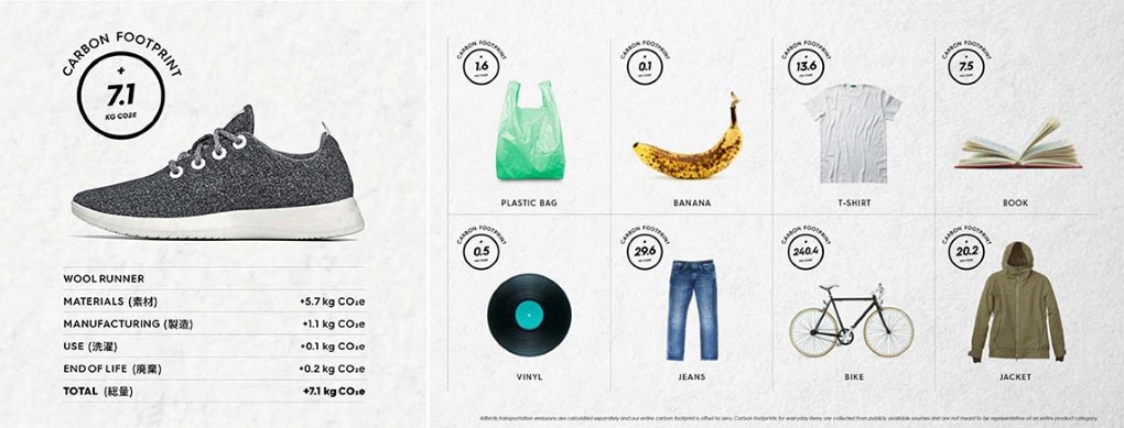 秉持以更環保方式製造更優質產品的理念,Allbirds同時也是一家獲得共益企業B Corp認證的企業。為了將永續環保觀念落實於產品中,自羊毛鞋開始,Allbirds研究以各種可再生的天然材料製作鞋子,包含超細紐西蘭美利奴羊毛、南非桉樹、巴西甘蔗、蓖麻籽油、以及可回收塑膠瓶等。2019 年,Allbirds更通過自行支付碳稅,實現了100%碳中和,並從2020年開始在所有產品上添加碳足跡標籤,明確標示出從材料、製造、使用到產品生命結束,各階段所產生的二氧化碳當量。