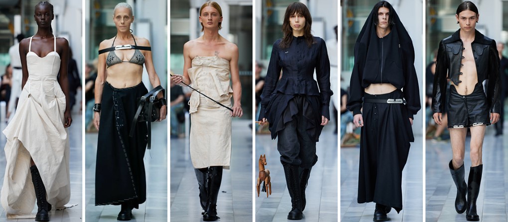 24春夏靈感來自馬術運動和設計師的童年記憶。沿用了該品牌的無性別設計理念,以中性色調為主,並融入柏林的黑暗美學。作為可持續品牌,使用百年蕾絲和升級皮革等材料的組合,增添了輕盈和懷舊的感覺。服裝細節以疏縫線跡和強調肩部輪廓等元素,向設計師兒時騎馬的時光致敬。
