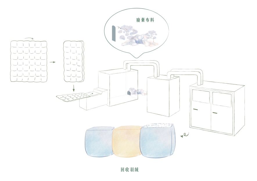 合隆毛廠與台灣設計師周裕穎JUST IN XX合作,以計畫「羽後新生」回收日本旅宿業大量淘汰的精緻羽絨被,重製後再次以全新產品面貌回歸飯店產業。Source:合隆毛廠